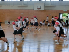 音声・音楽に合わせて20mを行ったり来たりしますが、どこまで走るのか、どのタイミングで走るのかタイミングを伝え、一度往復する練習をしてから取り組みました。