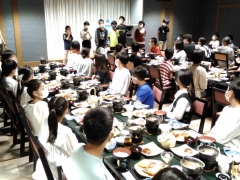 スペイン村でしっかり活動したのでみんな美味しそうに食べています
