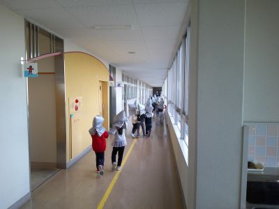 今日は、楠こども園、楠小学校、楠中学校で、地震その後津波を想定した合同避難訓練を行いました。