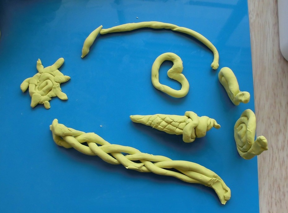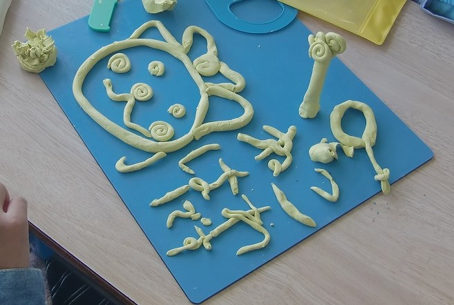 4月27日、図工の時間に、ねんどをひもにしながら、自分のつくりたいものを作りました。ひもの形をいろいろ変えたり、くるくる丸めたりして、工夫しながら創作活動を楽しみました。できあがった作品を見て、子どもたちの発想に驚かされました。
