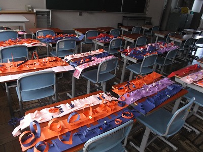 図工で取り組んでいます。写真の画用紙は塀になります。