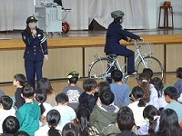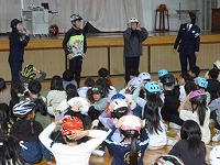 四日市市南警察署の方を講師としてお招きし、児童会が中心となり交通安全教室を行いました。この教室では、ヘルメットの正しいかぶり方や自転車の安全な乗り方などを教えていただきました。当日の朝、子どもたちは、この教室のために日ごろ使っているヘルメットをかぶって登校してきました。