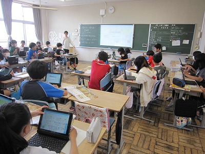 タブレットでは、先生と子どもたちの双方向に資料などを送り合うことができます。
