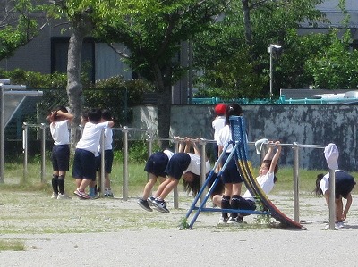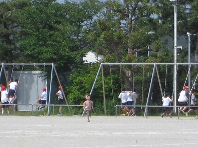「鉄棒しに行くの。」と言いながら鉄棒のほうに向かう子どもたち、「ボールが他の人に当たらないように気を付けて。」と気遣いしながらボール投げをする子どもたちがいました。