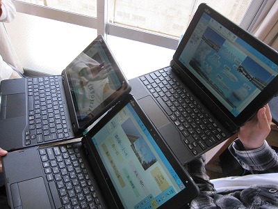 理科の授業で空の写真をタブレットで撮影しました。時間の経過に伴って雲の様子が変化していることを記録しました。これから天気の学習をします。