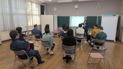 現在先生方は、四日市市教育アドバイザーの石黒先生にお越しいただき、体育にかかわって縄跳び等の指導方法について研修をしています。