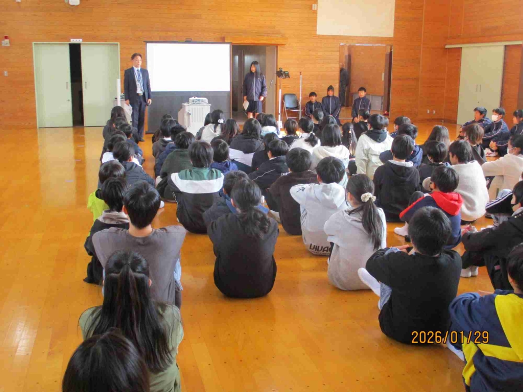 楠中学校2年生のみなさんに来校いただき、6年生と「デマやうわさに流されない自分になるにはどうしたらいいか」をテーマに話し合います。