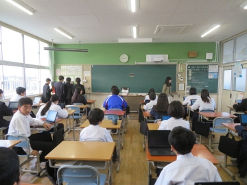 来週の火曜日は、2学期終業式です。全校生徒が集まる集会で、2年生は、職場体験学習で体験した内容を報告する発表会をします。今日は、代表の3グループがリハーサルを行いました。緊張した面持ちの中、素晴らしい発表をしていました。