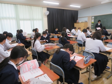 3年生は6限目道徳。楠小学校の先生方が授業を参観に来ました。定期的に小学校と中学校の授業をお互いに参観しています。小学生時代を知っている先生にとって、成長した生徒の姿はとても立派に映っていたようです。