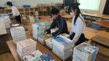 式後の学級開きでは、担任の先生から教科書が配付され、明日からの予定や連絡事項が伝えられました。