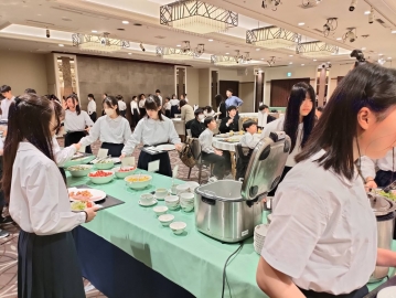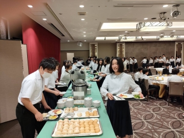 一日目の疲れも感じせず、各々食べたいものをチョイスして盛り付け、楽しそうに食卓を囲んでいます。