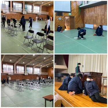 卒業式が1週間後に迫った今日、2年生が会場準備をしてくれました。先輩たちの卒業を祝うために、みんなが心を込めて作業してくれました。どうもありがとう!