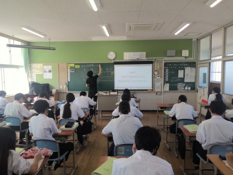 授業の始まりには、授業のめあてを生徒に示しています。何を学ぶかを明確にすることで、学習内容の定着度が変わります。目的意識を高め生徒は授業に取り組んでいます。