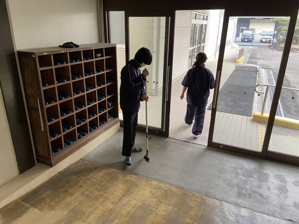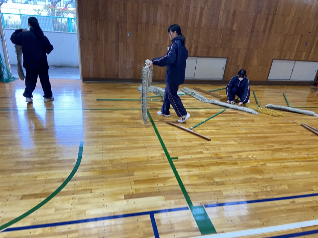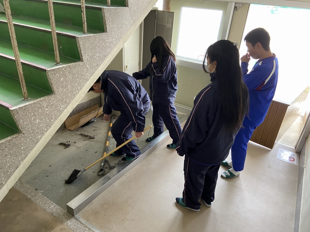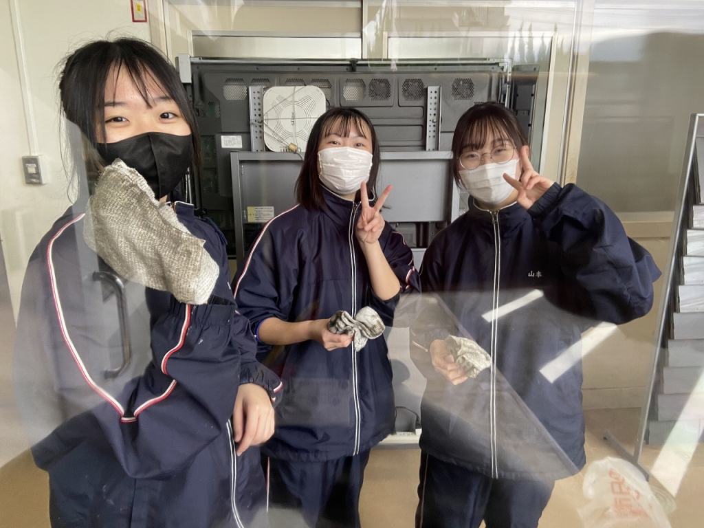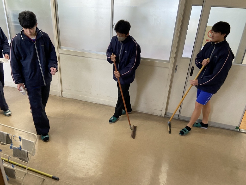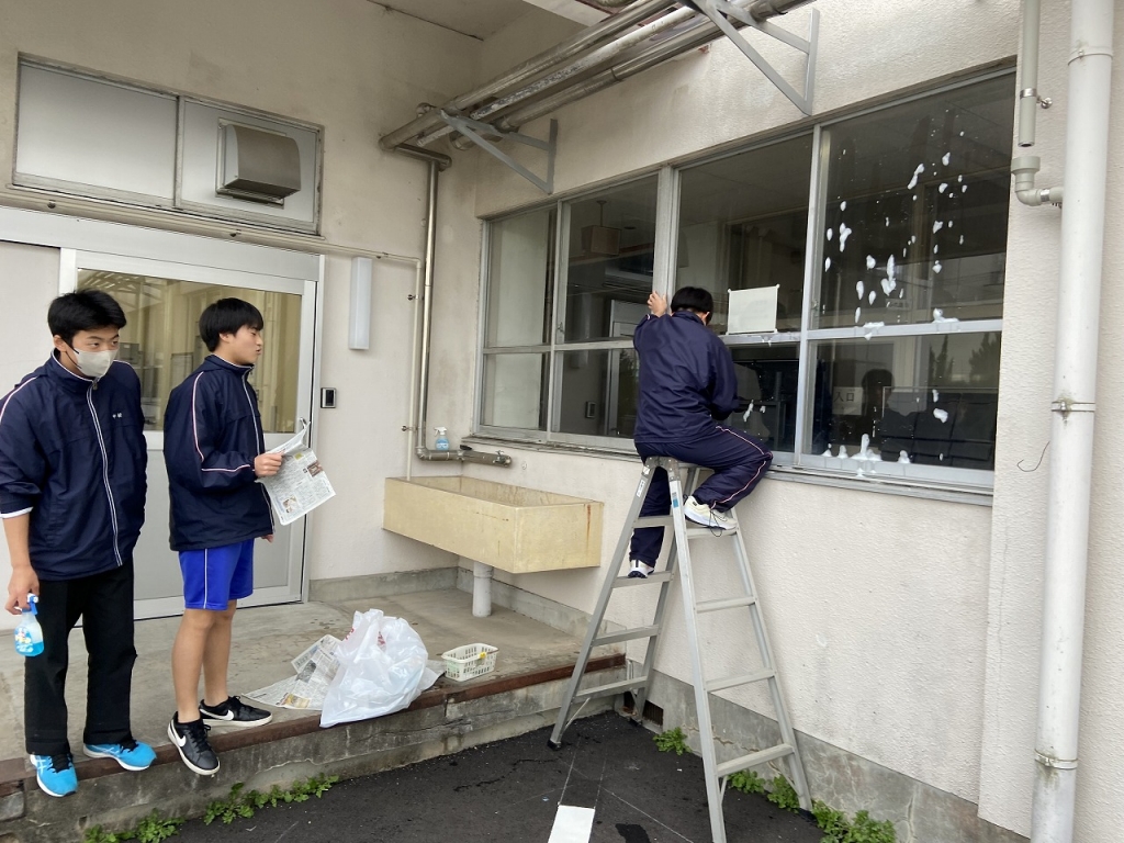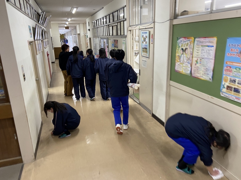 3年生はこの楠中学校で約2年11か月過ごしてきました。この校舎で過ごすのも、残り2週間です。卒業を前にこの学び舎に「ありがとう」の気持ちを込めて、奉仕作業に取り組みました。ただ掃除するのではなく、これまで過ごした思い出も振り返りながら、時間いっぱいまで丁寧に取り組む姿がありました。