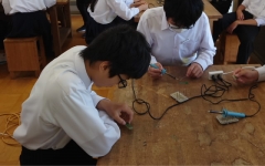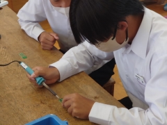 技術の授業では、はんだごてを扱っています。