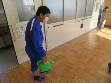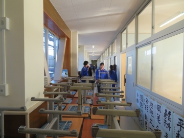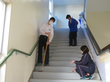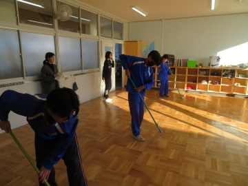 2学期も明日が最終日となりました。今日は、1年間過ごした教室などを1時間かけて大掃除をしました。普段掃除できない場所や扇風機のほこり取りを払ったり、廊下をメラニンスポンジでゴシゴシと擦ったりと、生徒全員が一生懸命掃除したおかげで見違えるように学校全体が綺麗になりました。また、放課後は、教室のワックスがけを環境美化委員を中心として行いました。