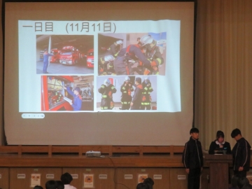 来週の火曜日は、2学期終業式です。全校生徒が集まる集会で、2年生は、職場体験学習で体験した内容を報告する発表会をします。今日は、代表の3グループがリハーサルを行いました。緊張した面持ちの中、素晴らしい発表をしていました。