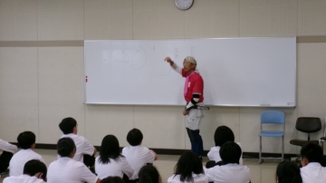 学校薬剤師の山下さんにお越しいただき、3年生を対象とした薬物乱用防止(薬の正しい使い方)教室を開催しました。アルコール依存、法律で禁止されている薬物の危険性や、エナジードリンクの過剰摂取の危険性などについて詳しく教えていただきました。