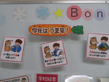 1月24日から30日は「学校給食週間」です。この期間に合わせて、栄養教諭が給食の歴史や食に関する豆知識をまとめた掲示物を作成しました。