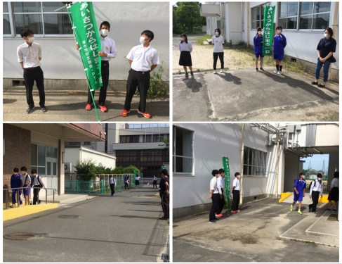 6月1日、今日は、毎月のPTAあいさつ運動の日でした。生徒会役員や代議員の人と一緒に、PTA地区委員さんらが参加してくれました。すがすがしく挨拶を返してくれる子が増えてきました。地区委員の皆さん、お忙しい中を本当にありがとうございました。