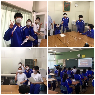 はじめに今週7日(土)から始まる中体連三泗地区予選にむけて、壮行会を放送とグーグルミートを使って行いました。各部キャプテンからは、これまでの練習の成果を出したい、ここまで支えてくださった人への感謝の気持ちで試合に臨みたいと抱負が語られました。とにかく思い切ったプレーを心がけてほしいと思います。