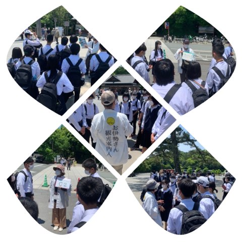 ガイドさんの説明を受けながら、伊勢神宮を案内してもらっています。