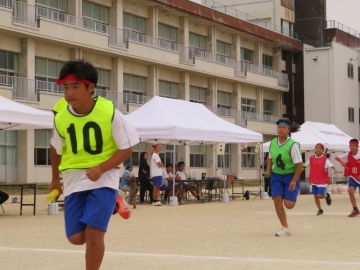 各クラスを2チームに分けての、学級対抗リレーです。