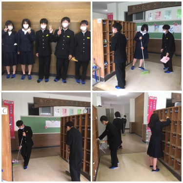 今朝、いつものように生徒昇降口の掃除に向かいますと、3年生の子たちが下駄箱を掃除してくれていました。