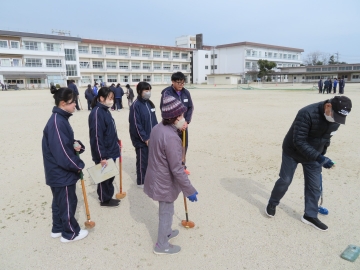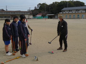 実は、生徒たちのほとんどがグラウンド・ゴルフは人生初体験!最初は「どうやって打つの?」と、恐るおそるクラブを握る姿が見られました。