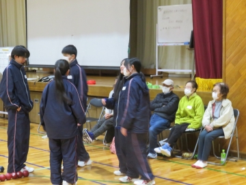 本日は、楠地区老人会のみなさまを学校にお招きし、スポーツを通じた心温まる交流会を行いました。