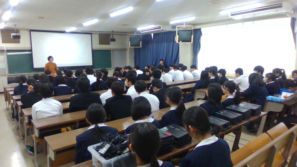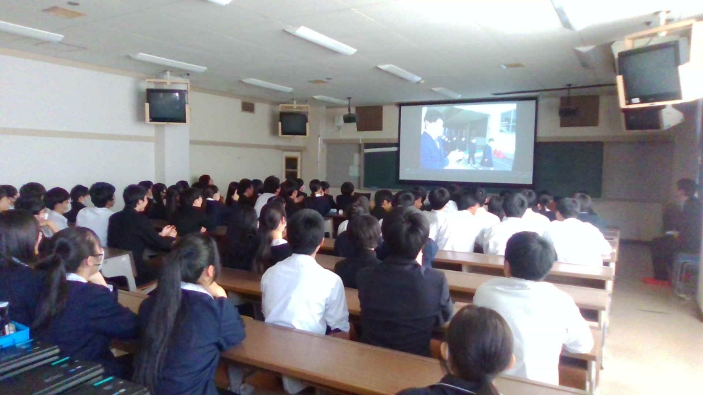 3年間の思い出を、みんなで視聴覚室に入って、ムービーで振り返りました。流れてくる写真を見て「なつかしい」「かわいい」などの声が上がり、笑顔のあふれる温かな時間がなりました。