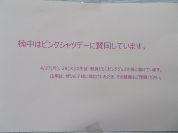 同時に、全校で「ピンクシャツデー」に取り組みました。