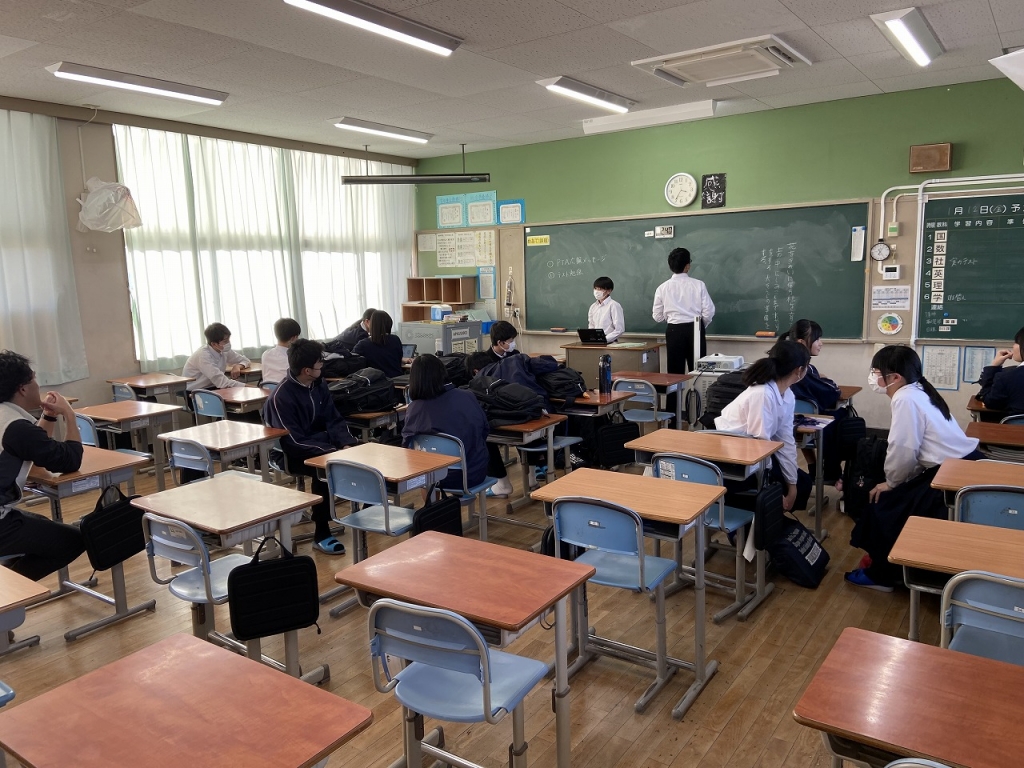 学年議会では、室長の4人で12月の目標の反省をしていました。あと40日で中学校生活も終わります。少しでも良い雰囲気で、しっかりと過ごせるように、最後まで尽力してほしいと思います。