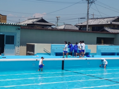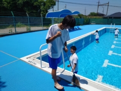 急に暑くなってきた今日この頃。本校では、水泳授業に向けてぷーるそそうじをしました。水泳の授業は1・2年生で行います。2年生がとってもきれいにそうじしてくれました。
