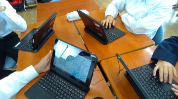 各々がタブレット端末を使って、昼食場所を調べたり、電車の時刻を調べたりしました。