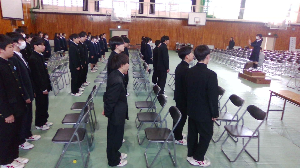 午後からは卒業式の練習の3回目がありました。前回よりもしっかりと動けていましたし、礼の動作も少しずつ揃ってきていました。授与の声はまだまだでない人もいるけれど、おおむねいい感じでできました。明日は、1・2年生も一緒に入って練習をします。3年生、ビシッと決めましょう!