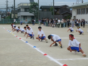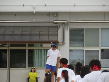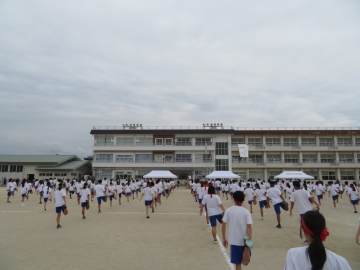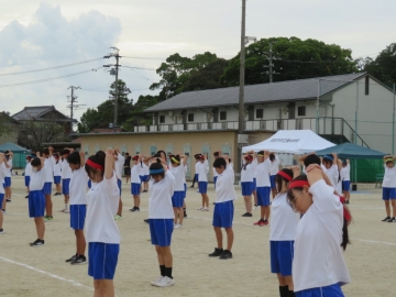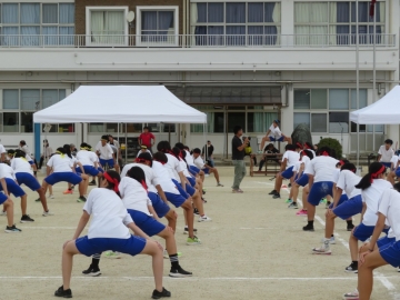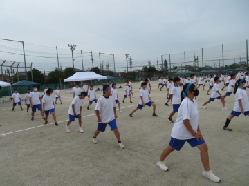 各クラスの室長が前で、体操しています。本部テントでは、来賓の方々も一緒に体操をしていただきました。