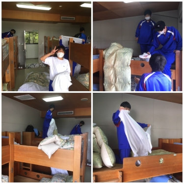 16:30からのお風呂の前にシーツをきちんとセットしています。