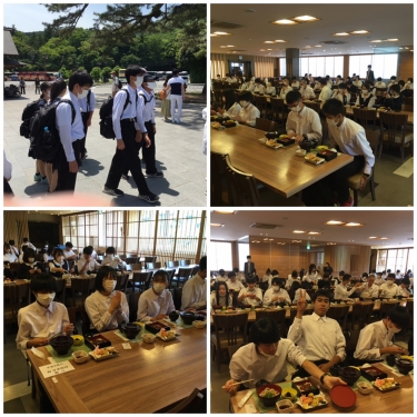 昼食はおかげ横丁の岩戸屋さんです。てこね寿司と伊勢うどんです。