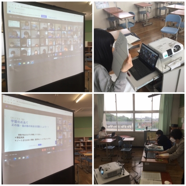 1年生学年閉鎖中のオンライン授業の様子です。中学生になってからの初めてのオンライン授業でした。さすがに小6の時に経験しているだけあって、接続も思いのほかスムースでした。