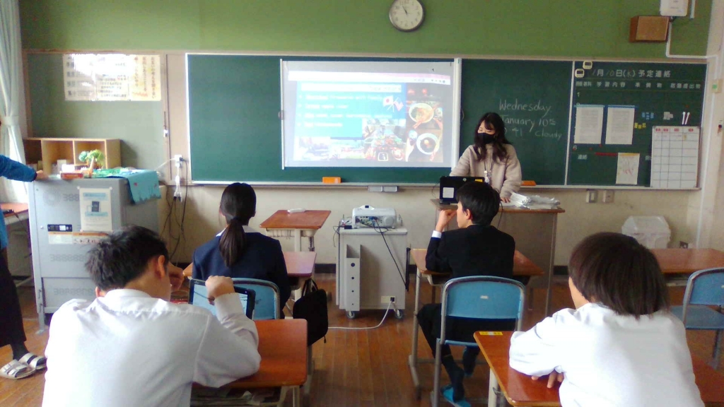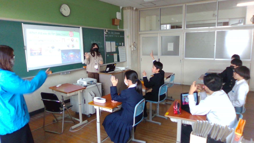 ふれあい学級の英語では、キャリー先生の冬休みの出来事の紹介があり、一人ひとり英語で冬休みの出来事を話しました。