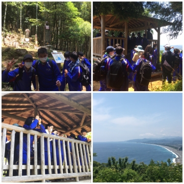 気温も上がり、松本峠の登り、結構きつかったです。ガイドさんに適度に休憩を入れてもらいながら水分補給です。東屋からの絶景に疲れも吹き飛んでしまいました。