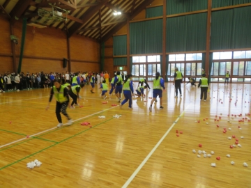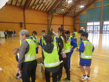 10月26日(日)に楠地区運動会が開催されました。当日は、悪天候となり体育館内での雨天バージョンとなりました。この地区運動会は、ボランティアとして参加した生徒や、競技に参加した生徒がたくさんいます。それぞれが役割分担した仕事を頑張っている姿がいろんな場面で見られました。