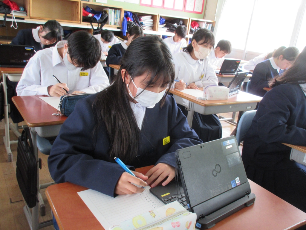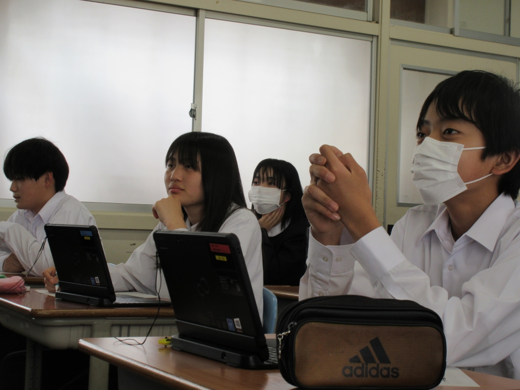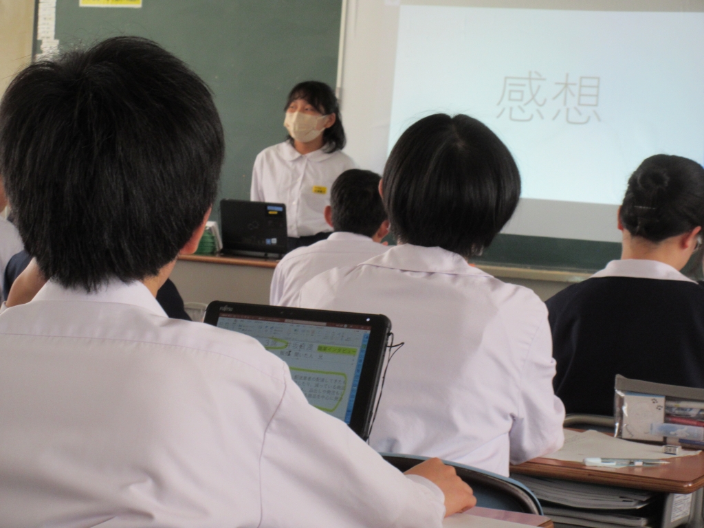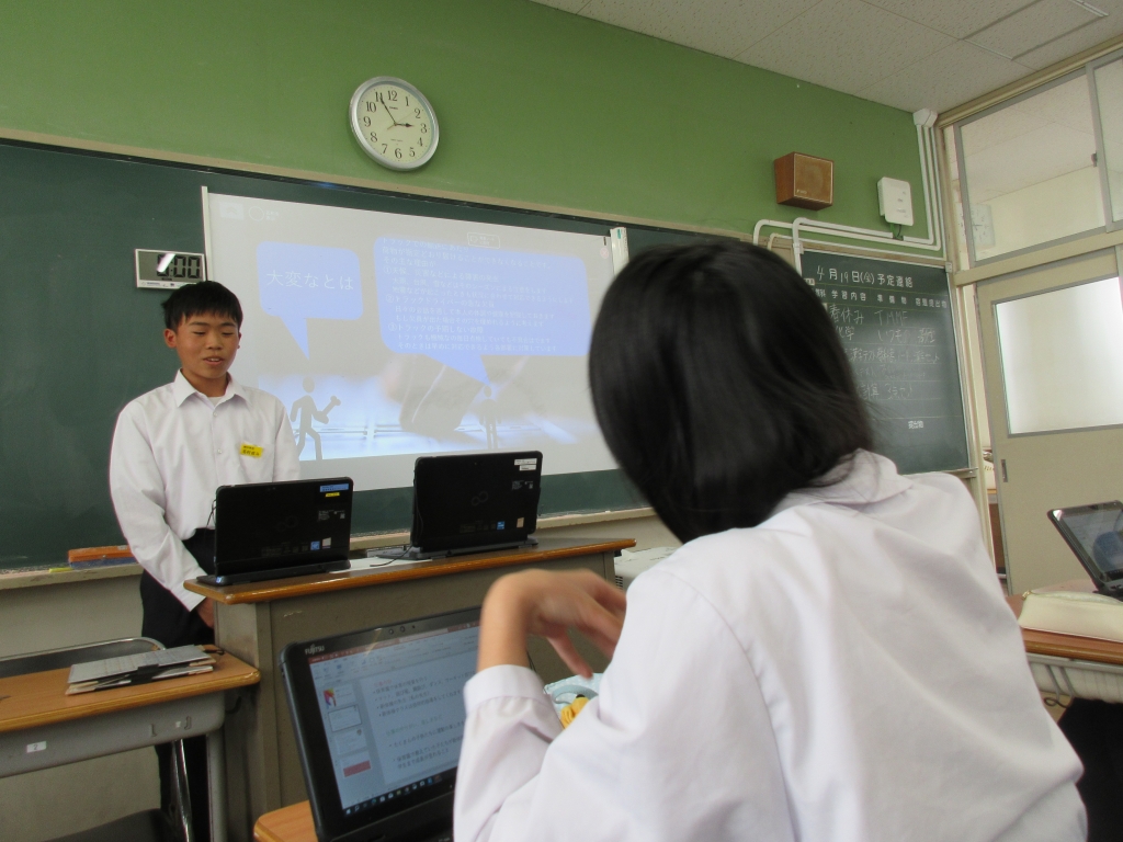 生徒たちは、聞いてきた内容をパワーポイントにまとめ発表しました。