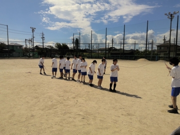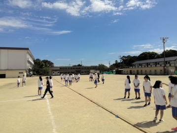 今日の4限目は、2年生と3年生が合同で体育の授業をしました。小集団種目「玉入れ」の練習では、2年生対3年生で対戦をしました。39対35で3年生が勝利しました。お互い切磋琢磨して、体育祭に向けて着々と体育祭の練習に日々励んでいます。