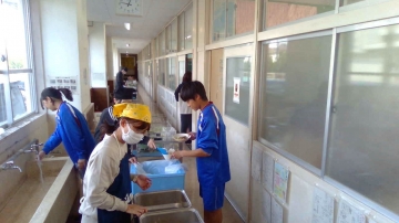 冷たくて甘いかしわ餅は生徒たちに大変人気があり、余ったかしわ餅を食べる人を決めるじゃんけんで盛り上がっている場面も見られました。