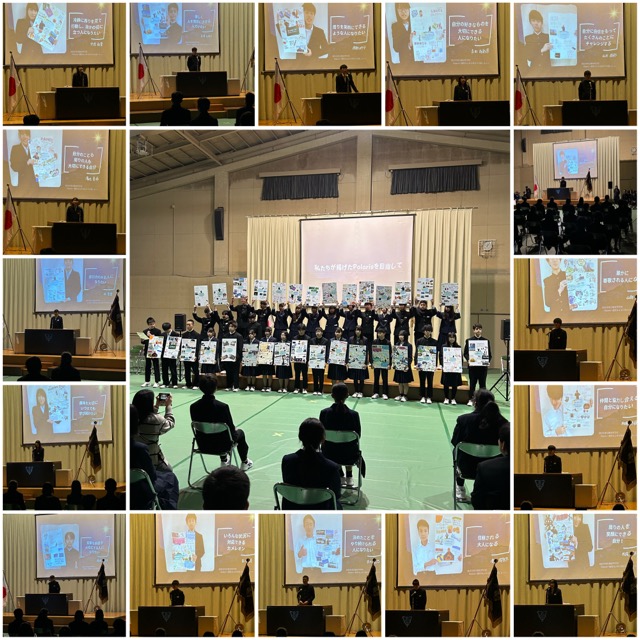 卒業式前日。3年生による最後のキャリア学習発表会となる、Polaris〜個性あふれる私たちの道しるべ〜が行われました。雨天で寒い日にもかかわらず、たくさんの保護者や地域のみなさんが駆けつけていただき、在校生や職員も一緒に見守る中、一人ひとりが自分の夢に向けての希望や決意を、しっかりと自身の口で語ることができました。