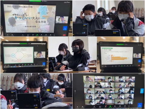 1年生キャリア学習 Polaris、今回は、合同会社 Sunflower 代表 鴇田陽介 さんをゲストティーチャーに招いてのzoom授業です。テーマは「かっこいい大人 」。「子どもたちが ”ありがとう” と言ってくれる未来を創る!」をビジョンに掲げて起業し、保育士から福祉コンサルタント、YouTuberと、さまざまなフィールドで活躍する鴇田さん。ユーモアあふれる話で生徒の笑い声が溢れる中、ご自身のキャリア選択について触れながら、「かっこいい大人」とはどんな大人なのかを考えていきました。鴇田さんからのメッセージを受け取って、また一つ「自分らしい生き方」の道しるべを得た生徒たちでした。