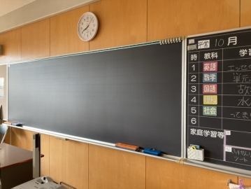 3年生生徒2名が、明日の授業に備えて、黒板をピカピカに磨いてくれました。