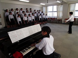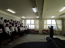 今日は,馬場先生による合唱指導の最終日です。文化祭に向けて各学年の合唱にアドバイスをいただきました。前回の合唱指導の時よりどの学年もレベルアップした合唱となっています。文化祭まであと2日です。各学年の最高の合唱にするために,最後まで頑張りましょう!また,各学年の発表や教科の発表も良い発表となるように頑張りましょう!